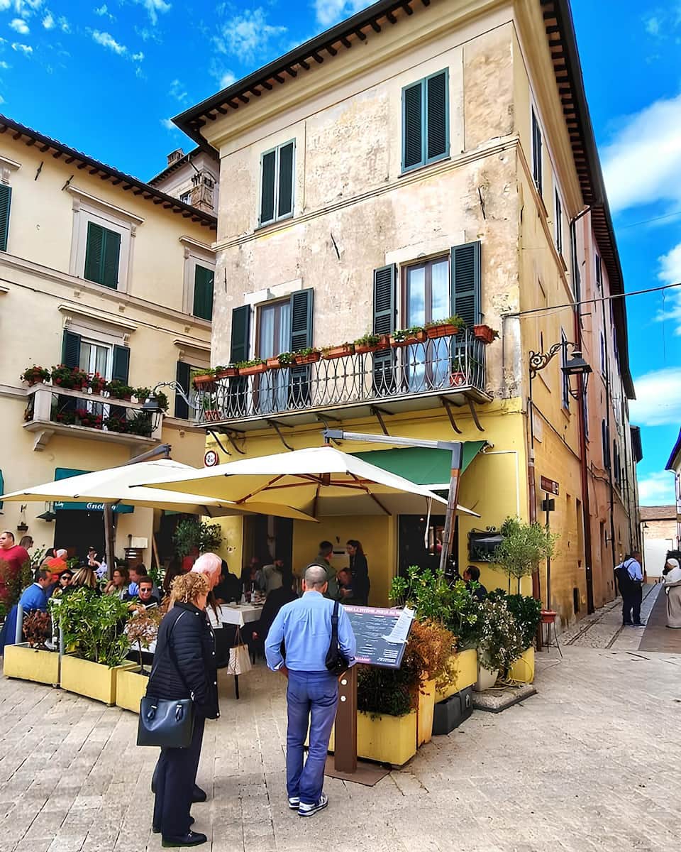 Local Life. Bar Tullia on Via Cavour is where locals gather for morning coffee – their cappuccino costs €1.20 and the owner Giulio knows everyone’s order by heart. The Thursday market on Piazza della Repubblica runs from 8:00 AM to 1:00 PM with local produce and handmade crafts. Enoteca Properzio stays open until 9 PM and offers free wine tastings on Saturday afternoons. During summer evenings, locals bring chairs outside their houses and chat until late – it’s the most authentic Italian small-town experience you’ll find. La Cantina restaurant opens only for dinner and serves the best local lamb dishes for around €14.